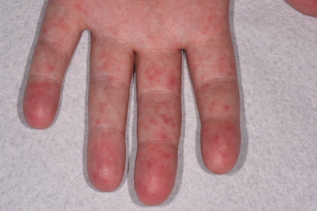 - 손, 발, 입에 나타나는 수포성 발진: 수족구병의 가장 특징적인 증상 중 하나로, 손등, 발등에 크기가 3-7mm 정도인 수포성 발진이 생길 수 있습니다. 또한 입안에도 물집과 궤양이 발생할 수 있습니다. 이러한 수포는 일반적으로 주위가 붉고 가려우나 통증은 드물합니다.